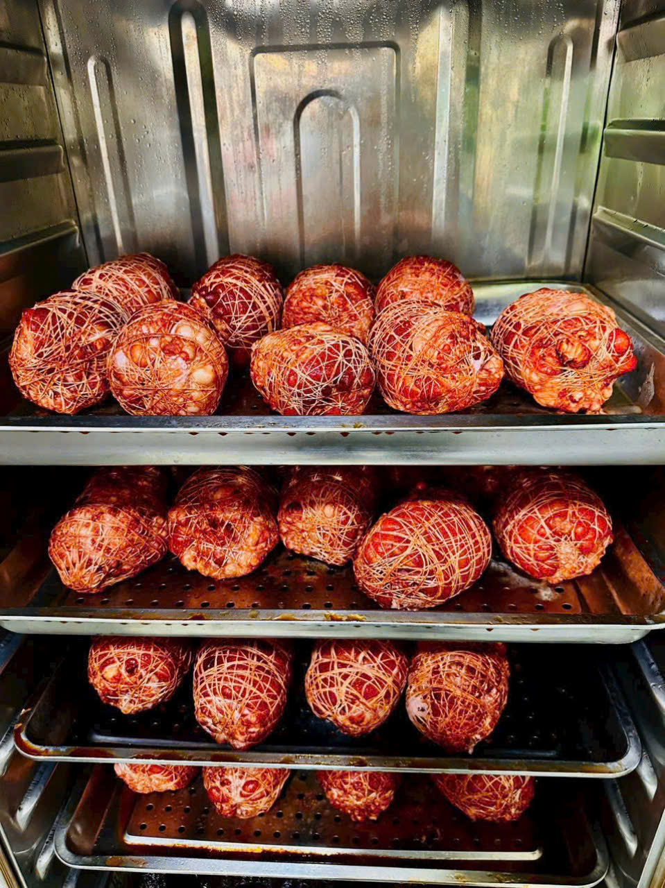 Bên trong khoang nấu là những khay đựng thực phẩm được sắp xếp đều nhau. Có 2 loại khay phổ biến là khay liền và khay lỗ. Khay liền chuyên dùng để đun nấu những thực phẩm dạng lỏng như cơm, xôi, còn khay lỗ phù hợp để hấp giò, chả, xúc xích, gà vịt,…